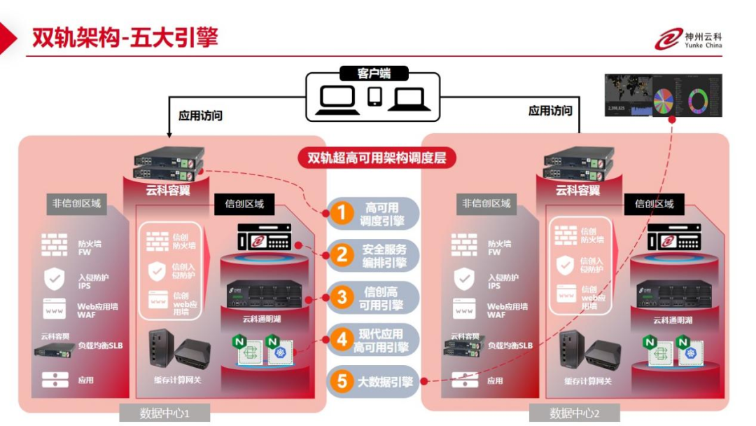 数据中心架构在自主创新的过程中分解为现有架构的非信创区和信创区的两个业务区域,在每个数据中心分为信创区和非信创区后,在两个区域之间的跨区跨域协同方法,庄闲通过5大引擎实现多层次的应用可持续性实践。