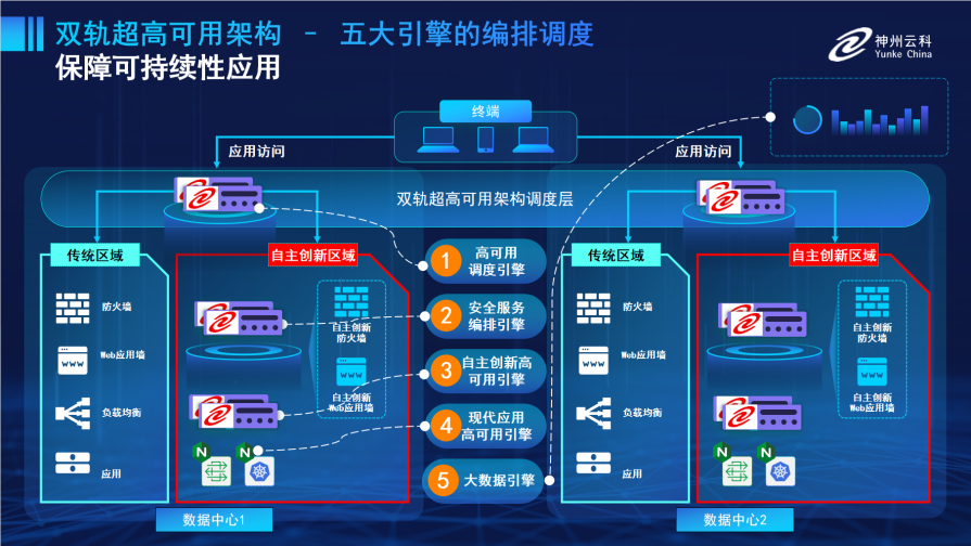 为满足数据中心双轨建设信创区和非信创区跨域协同,庄闲通过5大引擎实现双区无缝切换,跨域协同。